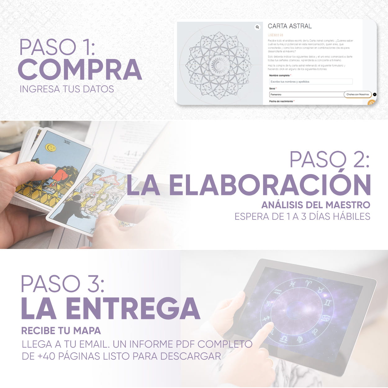 2️⃣ Tu Carta Astral será preparada y escrita por un Maestro del Destino.
